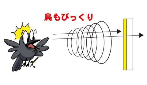 鳥類は、行動の大半を視覚に頼っているといわれています。「撃退ドットマン」を見せることによって、鳥の焦点をぼかしたり距離感を失わせたりして視覚を混乱させて、鳥類の嫌がる空間を作り出して鳥を近寄らせなくさせます。